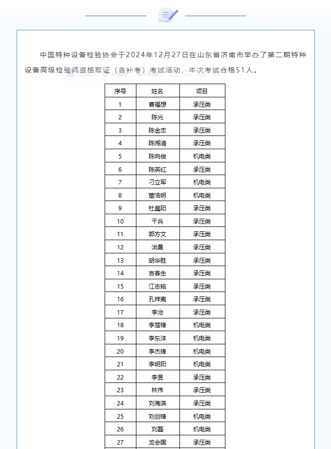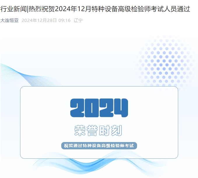 【行業新聞】|熱烈祝賀2024年12月特種設備高級檢驗師考試人員通過